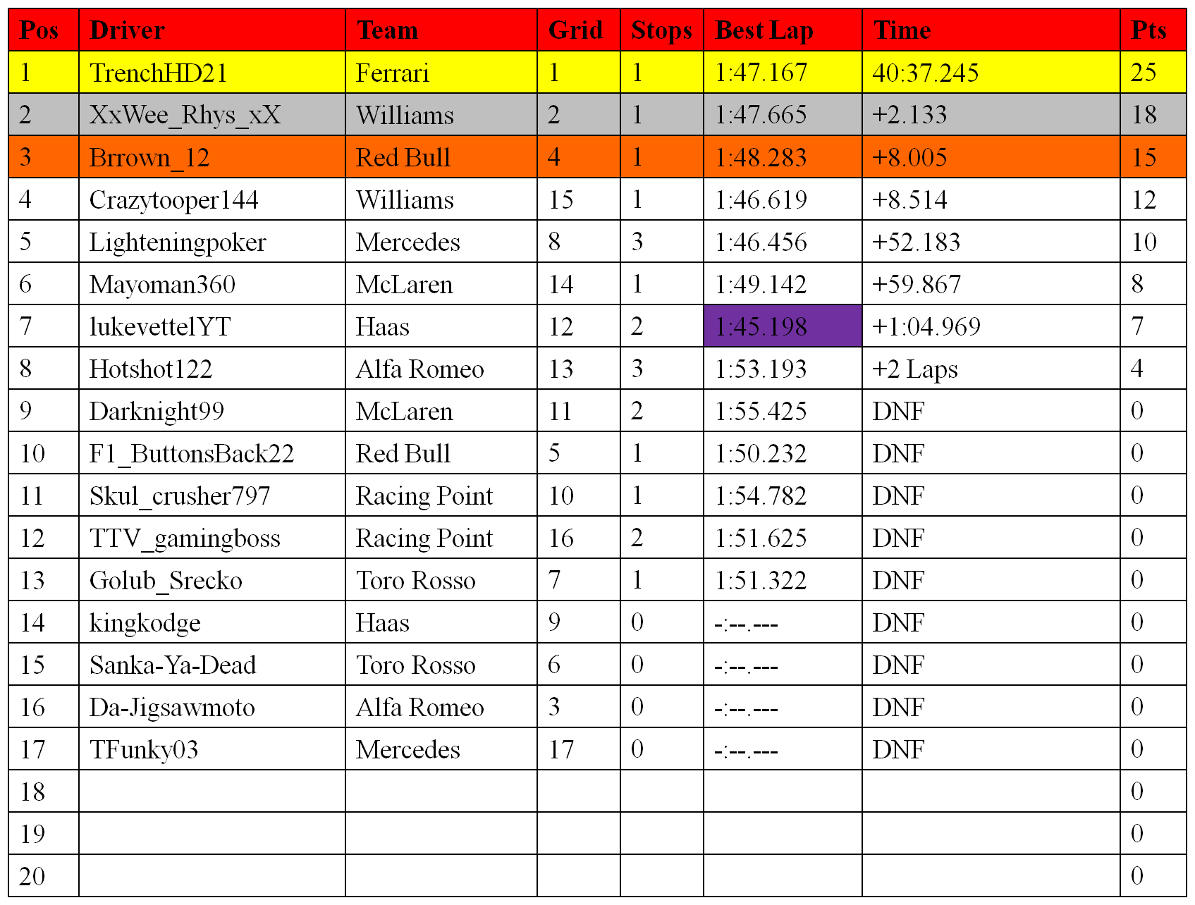 crazytrooper144 earned this award for his great comeback after lap one incidents also grabbing himself the fastest lap award.